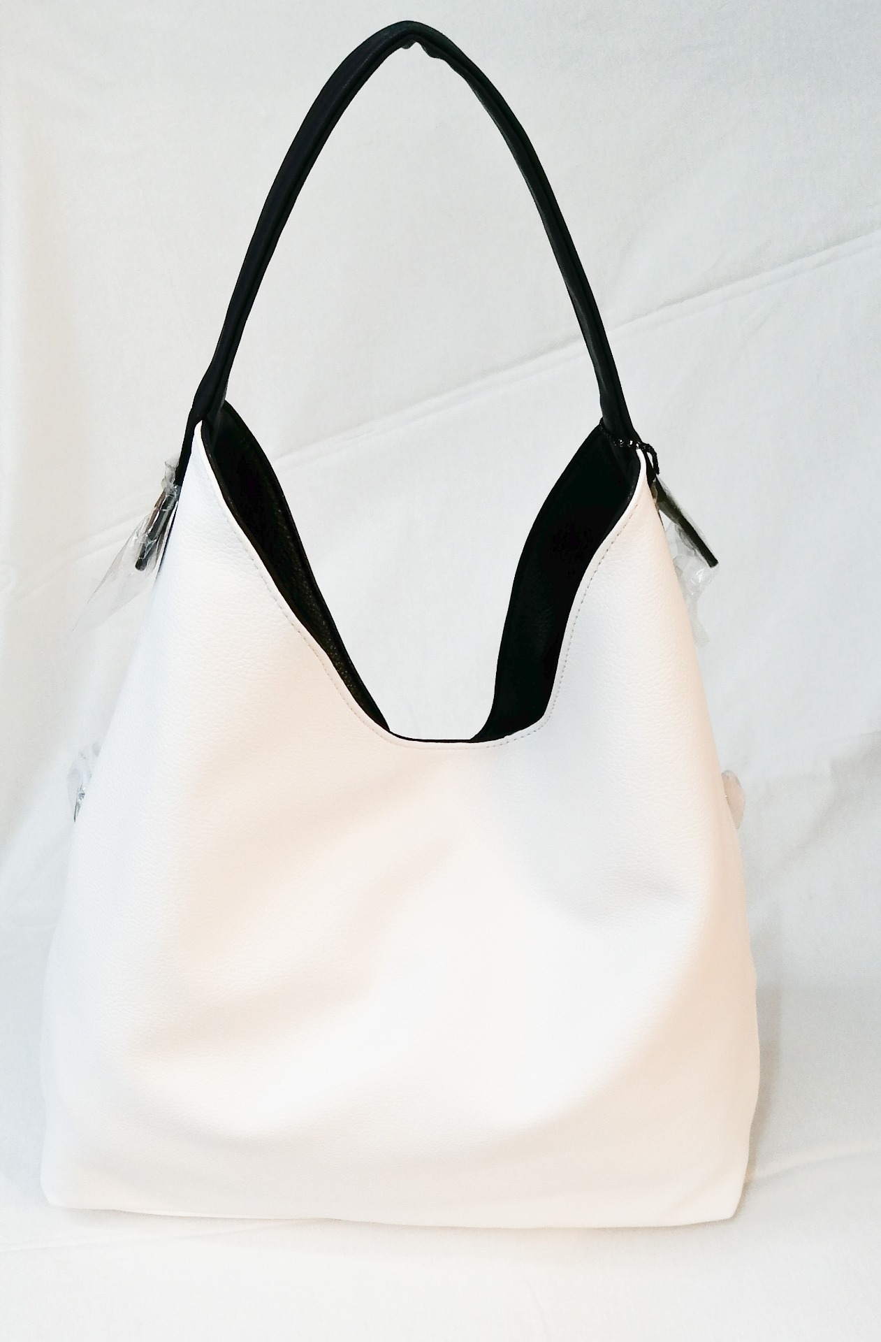 borsa double face bianca e blu manico morbido pouscette interna in tinta blu possibilità tracolla