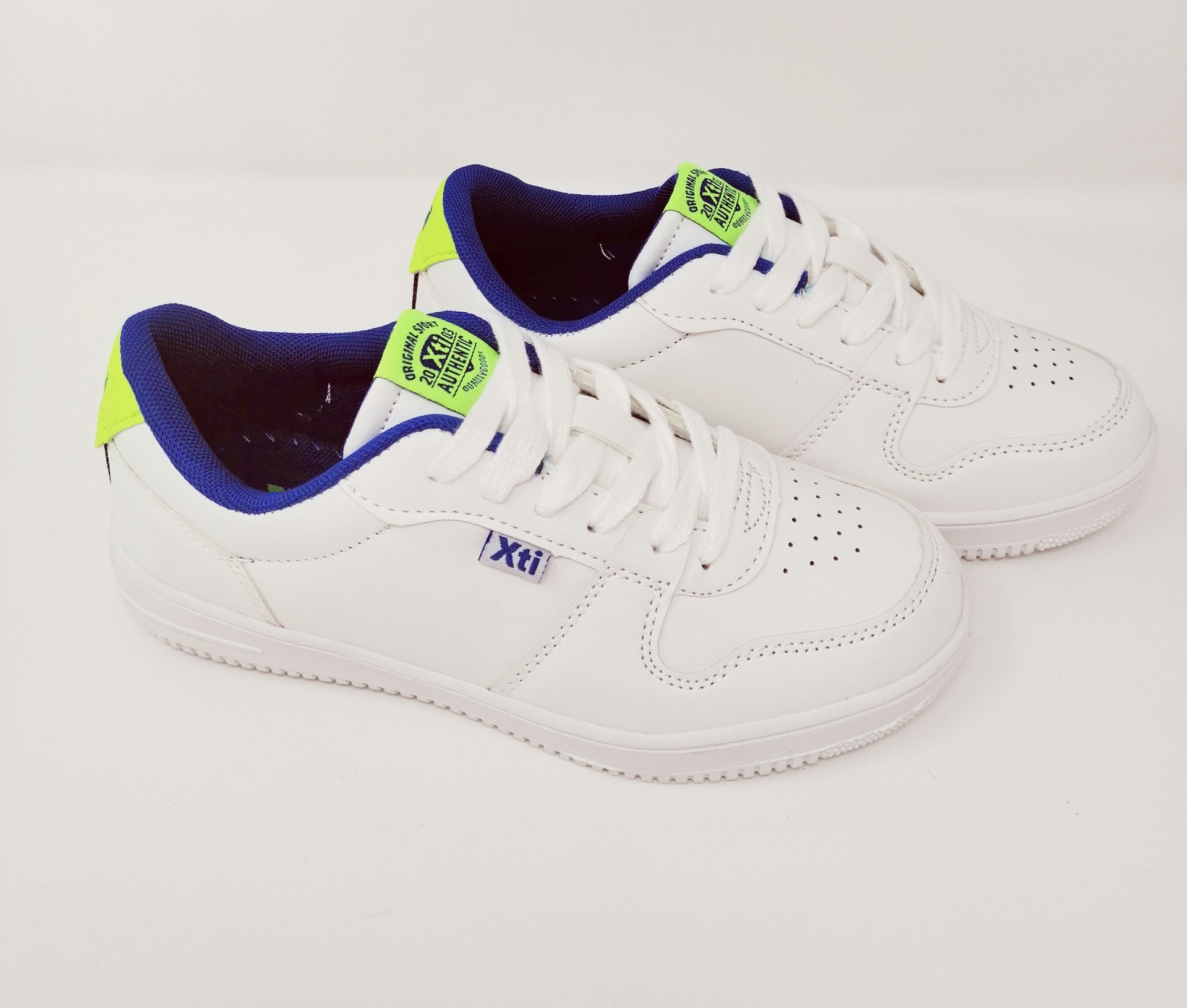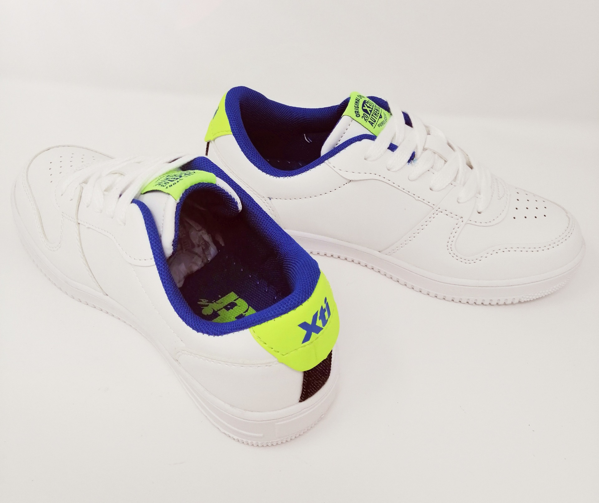 scarpa da ginnastica stringata colore bianco con inserti verde e blu